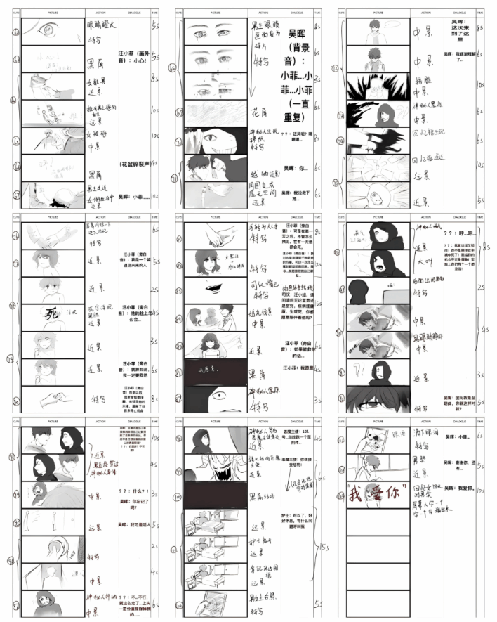 《分镜头设计》是数字媒体艺术专业核心课程,分镜头设计是电影、动画、广告等视觉叙事艺术中不可或缺的一环,它将故事的创意转化为视觉语言,为观众呈现一个连贯、引人入胜的故事世界。本次展览旨在展示学生们在本课程中的学习成果,以及他们如何将理论知识应用于实践,创造出具有个性和创意的分镜头作品。每位同学独立作业,在细致规划的分镜头稿纸上,精心绘制每一帧画面,创作出一系列扣人心弦的视觉叙事作品。这些分镜头设计作品承载着同学们对故事的创意表达和独到理解。通过细腻的笔触与巧妙的构图,引领观众步入一个个或梦幻、或现实、或悬疑的视觉世界。《分镜头设计》课程结课展览不仅是对学生们学习成果的展示,也是对分镜头设计艺术魅力的一次探索。期待通过此次展览,让大家一同感受视觉叙事的力量。