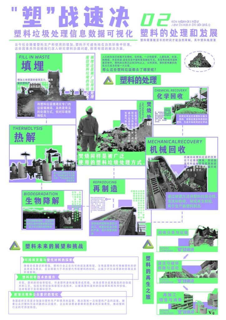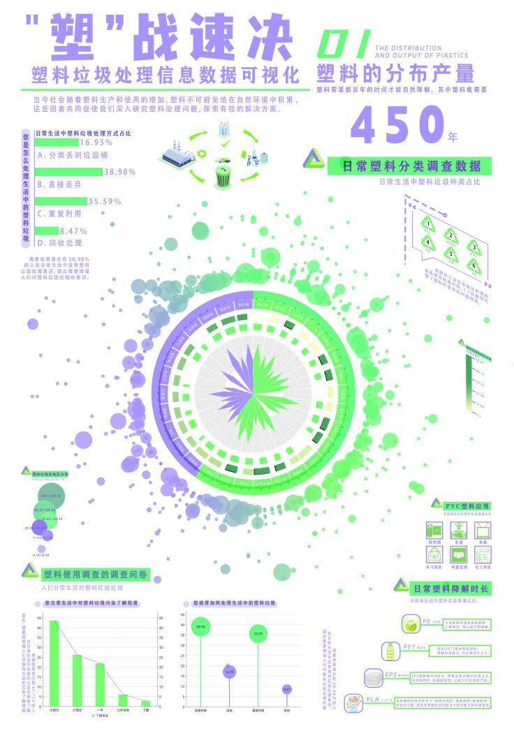 作品名称:《“塑”战速决——塑料垃圾处理信息数据可视化》